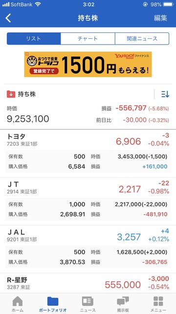 【相談】ワイのJT株の含み損が50万円突破しそうなんやが損切りした方がええんか!?