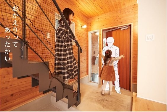 妻、娘の3人で一家だんらんを過ごす企画で、同社は「暮らしを実現するための手段として、住宅を提供しているという