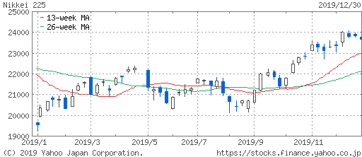 東京株式市場の2019年の取引最終日となる30日の大納会で、日経平均株価は2万3656円62銭と、年間の終値としては1990年(2万3848円)以来、29年ぶりの高値で取引を終えた。