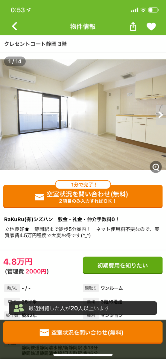 ほぼ同条件の賃貸(静岡駅徒歩6分でワンルーム)が月5万や