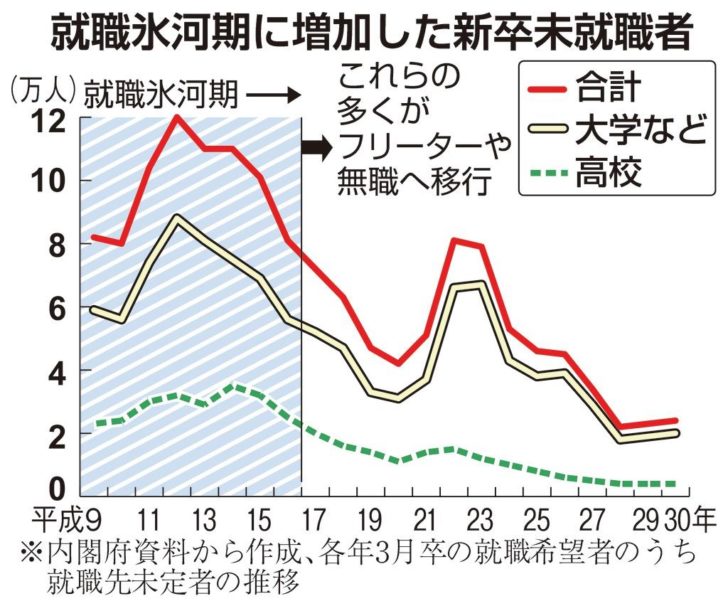 氷河期は不景気と世代人口過多のダブルパンチ状態