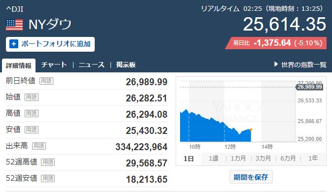 NYダウが暴騰途中で大暴落し、世も末だと思ったが、