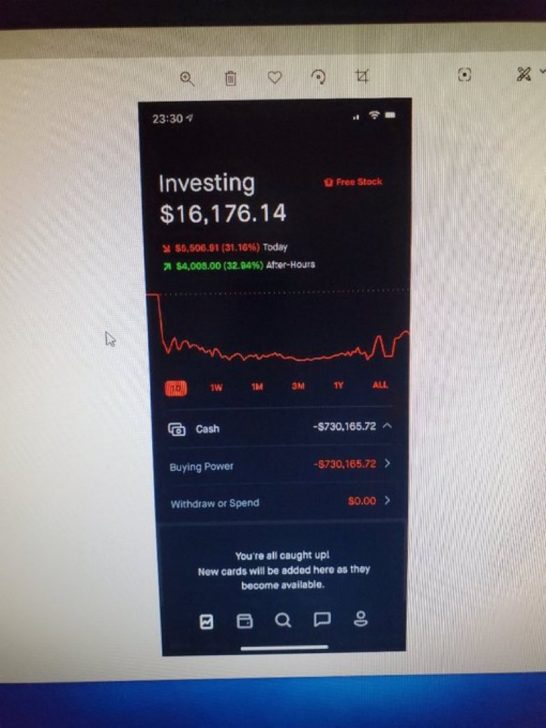 カーンズは、ロビンフッドのアプリに表示されたマイナスの残高が一時的なものにすぎず、購入した株がアカウントに反映されれば修正されることを知らなかったのかもしれない。」