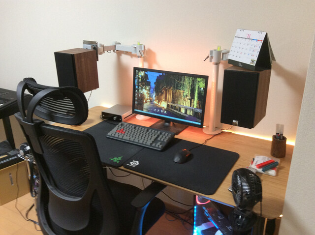 モニターを机に直置きしてるやつ多いけど、モニター台かアームで高さは上げたほうが良いぞ