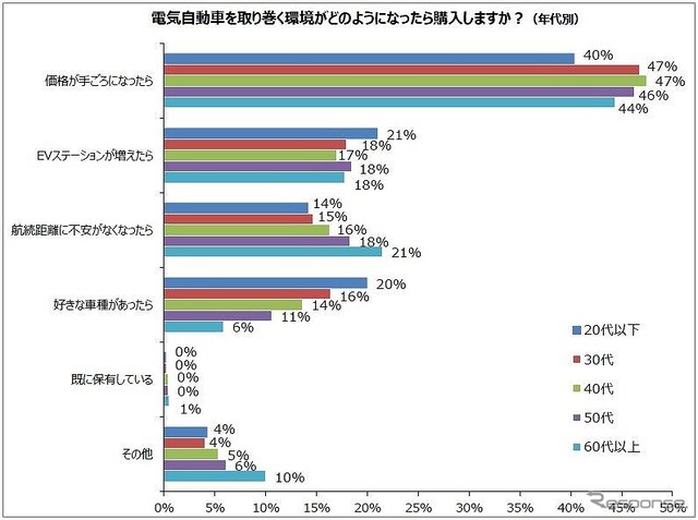 どのような状況になったら電気自動車を購入しますか(年代別)
