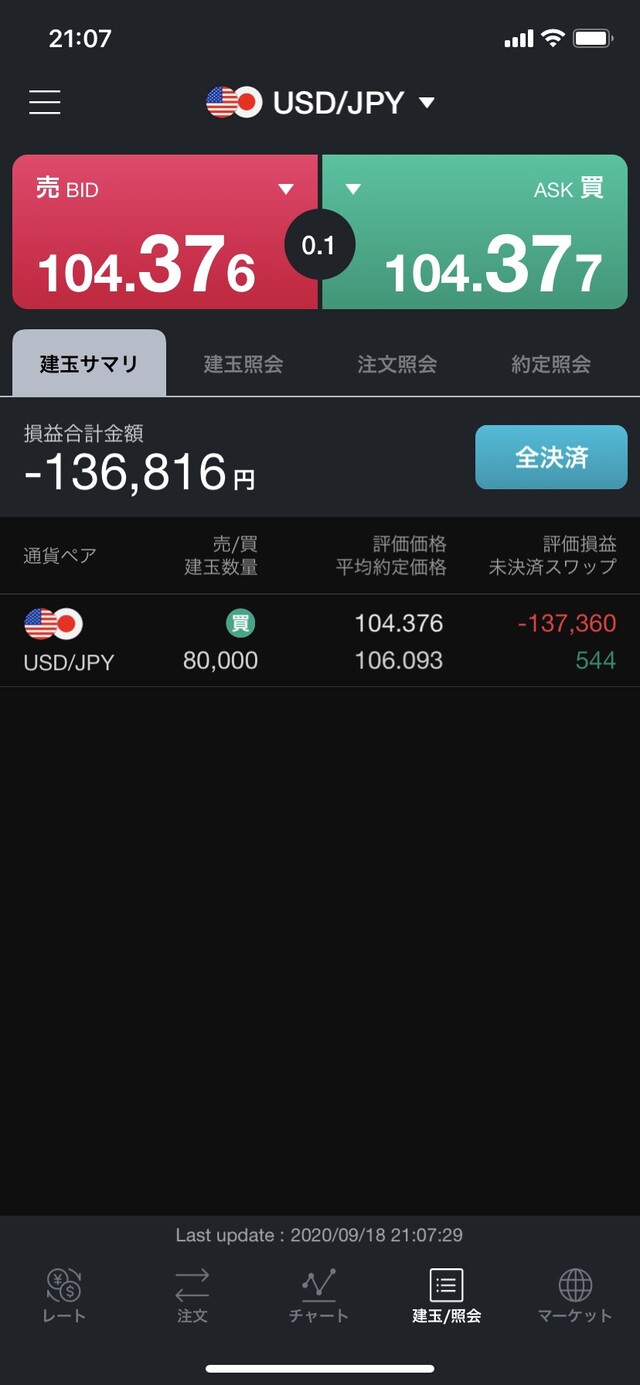 延々と106円~106円50くらいを動いてて憎たらしいほど106円割らなかったからまた戻すものかとばっかり思って