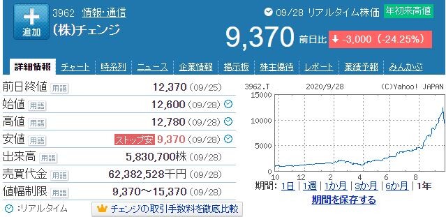 チェンジ君10%以上暴落してんね