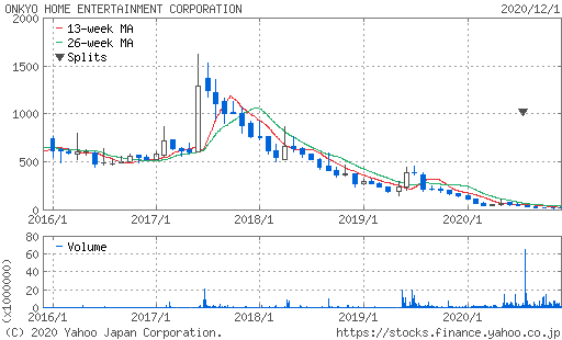 AIスピーカーが云々で一瞬高騰した後、肝心の製品が遅れに遅れてグダグダになってる間に他社から次々と新製品が発売されて、さらにその後特に良いニュースもなくしめやかに息を引き取った会社