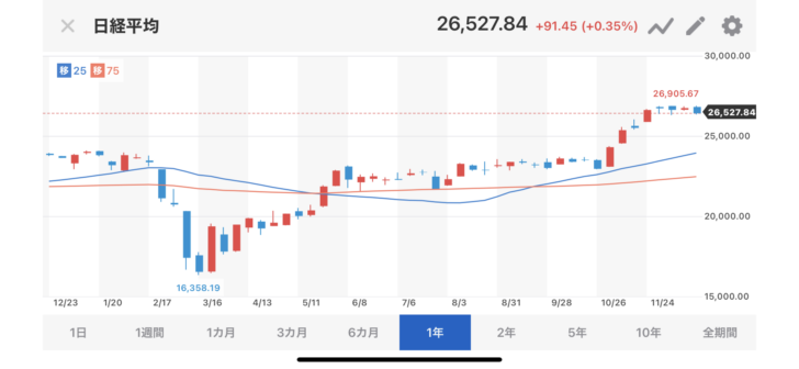 正直、コロナ禍真っ最中なのに日経もダウも「期待感」だけで26000まで上がってるのがおかしい