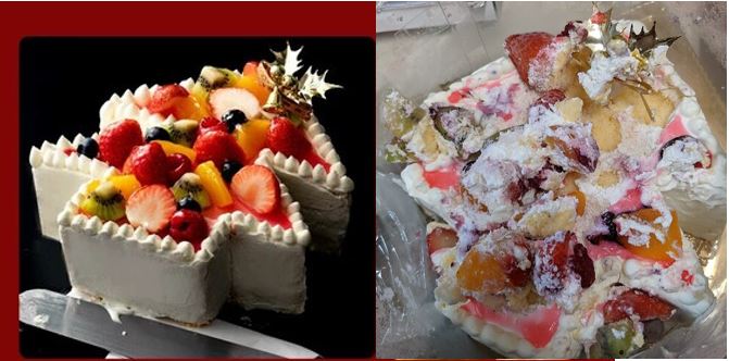 頼んだ指定の時間にケーキはこないは、開けたらぐちゃぐちゃになっているケーキが入っており、いったいどうゆう事なのでしょうか?