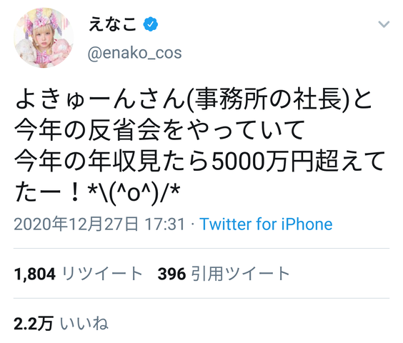 コスプレイヤーえなこ「年収5,000万円を超えました!」←許されるんか🔥