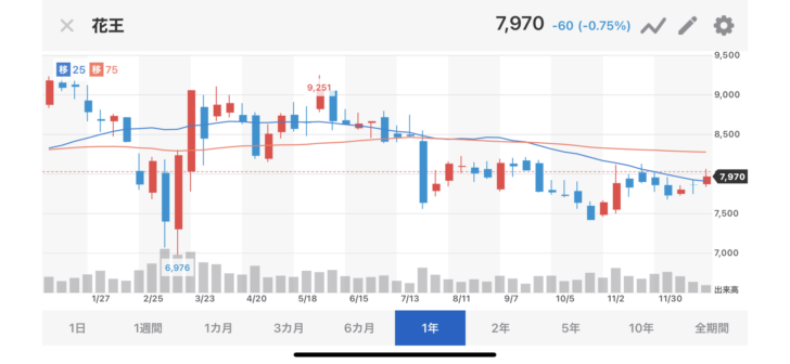ワイ、一大決心し花王の株(80万円)を購入。エントリーの根拠は連続増配なり。