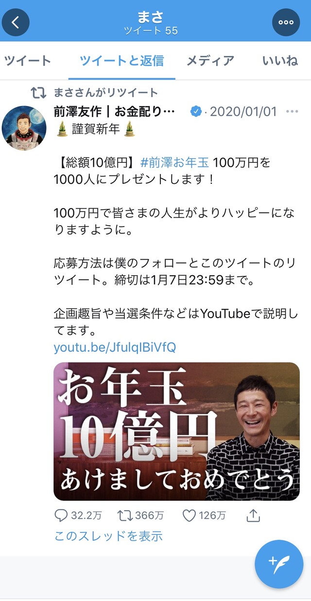 1番最初が前澤さんのお年玉リツイートなのも生々しい