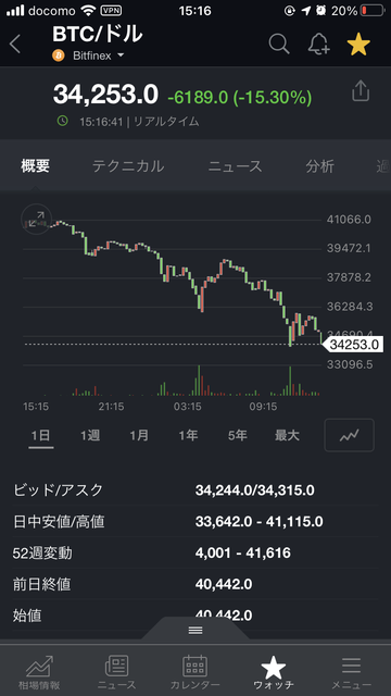 34000ドルがサポートラインだろ 絶対30000ドル割ることはないと断言できるわ