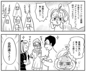 西野のサロンが宗教じゃない説明をする漫画をご覧下さい。