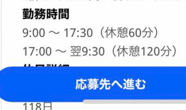 休みは118日やから週休2日やろうし夜勤の長いのは月1週間程度で