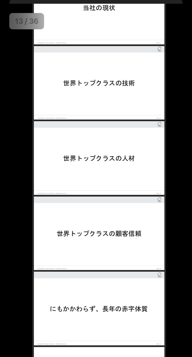 ジャパンディスプレイさん、学生バイトのような決算資料を出し株主が困惑してしまう。