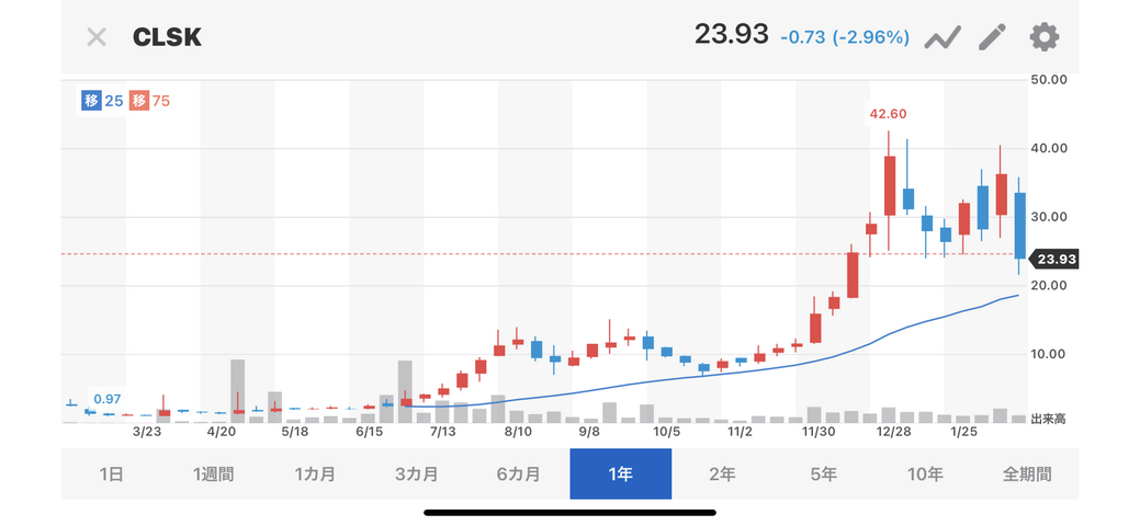 $CLSKはかなりギャンブル性高い銘柄だし