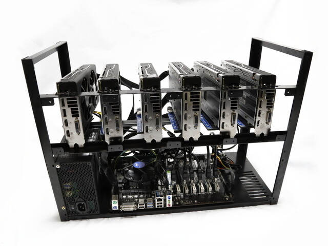 マイニングPCって基本的にケース付けずに裸で組み立て運用するんでしょ?こんな感じで↓