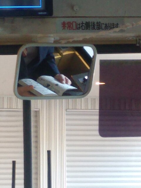数日前の阪急バス。始発停留所で客待ちの間、漫画呼んでる運転手。