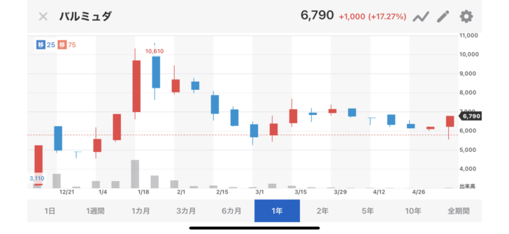 バルミューダ株(6612)は、+1000のストップ高だわ。w