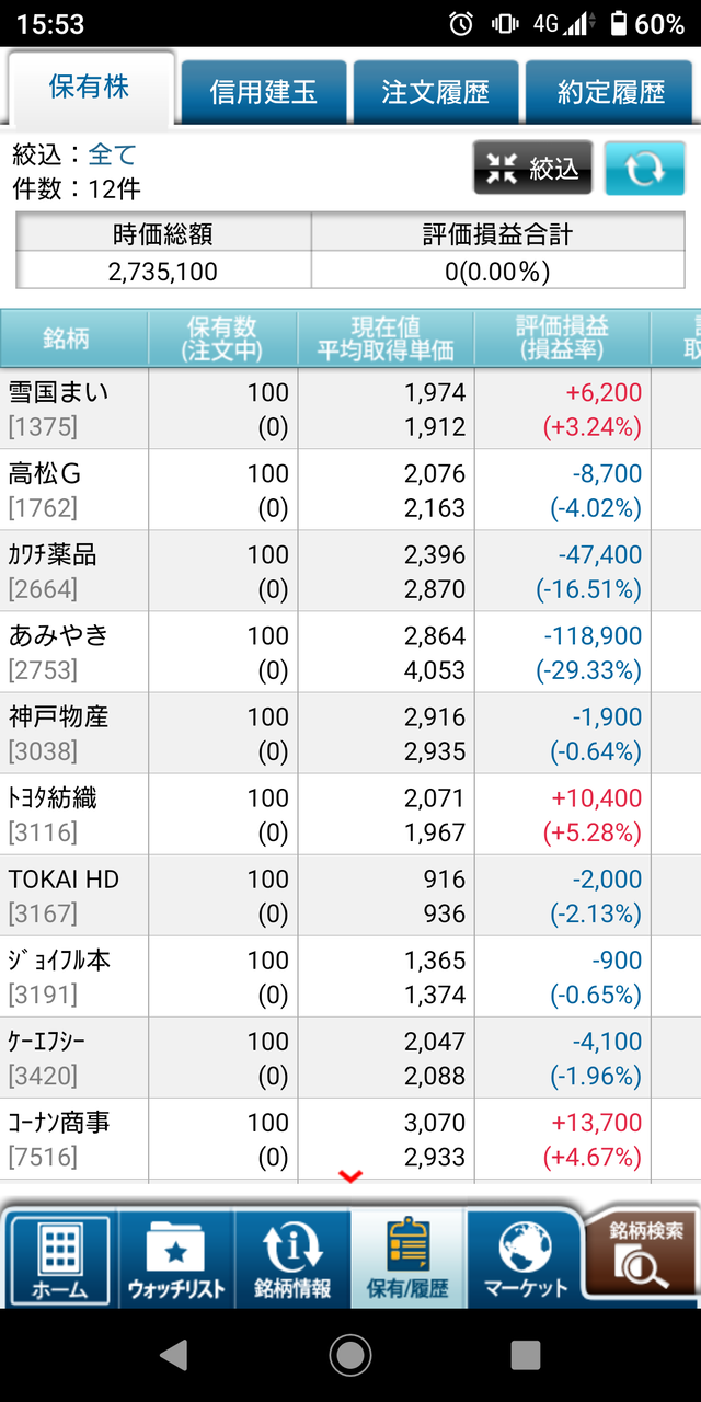 銘柄多すぎやせめて3銘柄に絞らんとな全部100株とかww