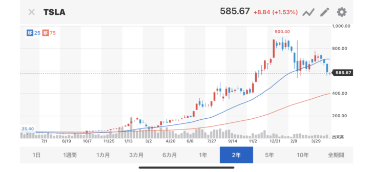テスラ株はいつだって割高に感じて躊躇するが最近これがアメリカンドリームなのかなと理解するようになった