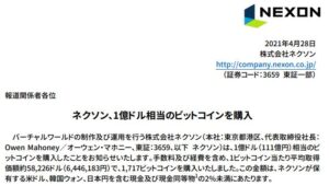 【悲報】ネクソンさん、111億円相当のビットコインを天井の価格644万円で買ってしまう