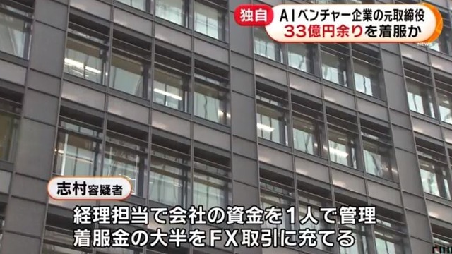 事件当時、志村容疑者は、経理担当者で会社の資金を1人で管理していて、着服した金の大半をFX取引に充てていたという。
