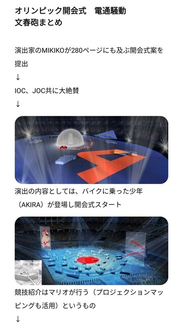 当初のMIKIKO案のオリンピック開会式ってどんなだったんだろうな~って調べるために有料記事読んでみたら、