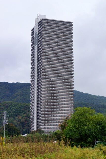 千葉県佐倉市の「ユーカリが丘」開発で知られる不動産デベロッパー・山万の関連会社、山万アーバンフロント(’14年に破産)が開発し、’99年に完成したこのタワマン。41階建て全389戸の分譲マンションで、高さは東北一の134メートル、最寄り駅の山形新幹線かみのやま温泉駅までは徒歩30分ほどだ。