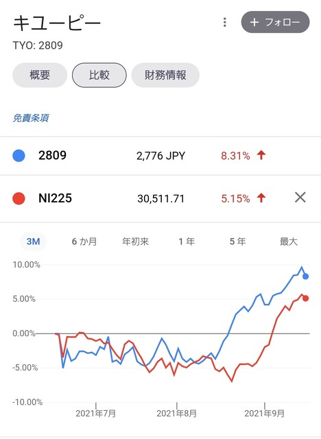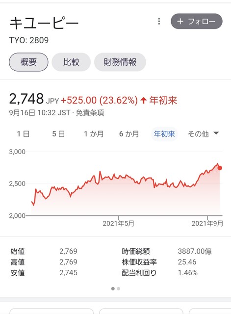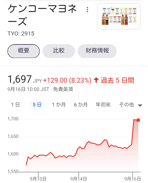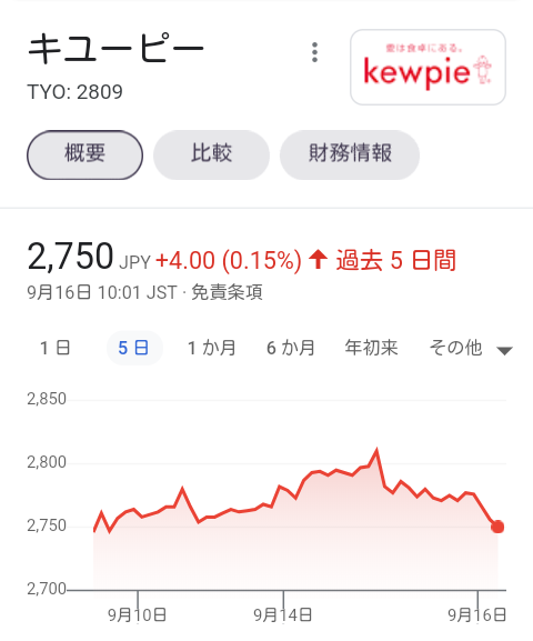 キユーピー5日前と比べて上がってるのにネトウヨはこのグラフで何を証明したいわけ?