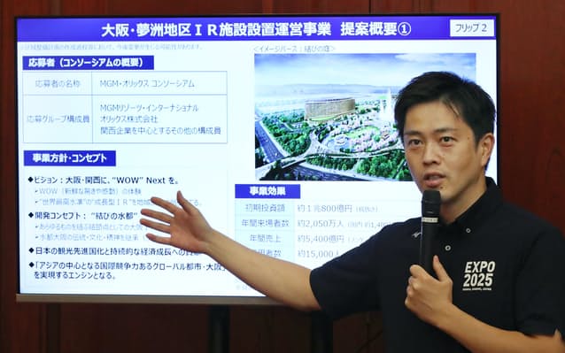 MGM・オリックスの共同グループは大阪IRの公募に唯一参加していた。府・市は9月中旬までに選定委員会で事業者を選んだ。同グループは25年国際博覧会(大阪・関西万博)の会場にもなる人工島・夢洲(ゆめしま)に初期投資額約1兆800億円で20年代後半の開業を計画している。