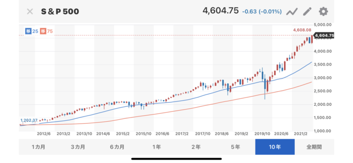 数年前高値掴みしたと思ったS&P500今見たら55%プラスや