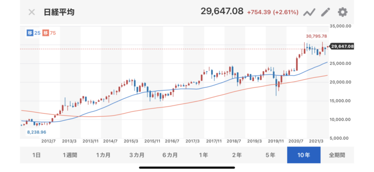 レバナスやってるけど、これを分散投資と呼んでいいか悩むわ。