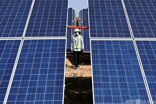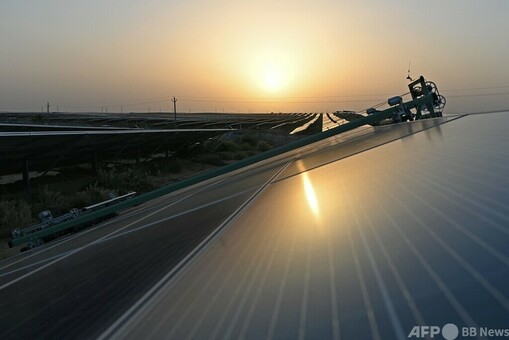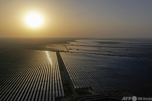 2070年までに排出ゼロ目指すインド、砂漠一面のソーラーパネル