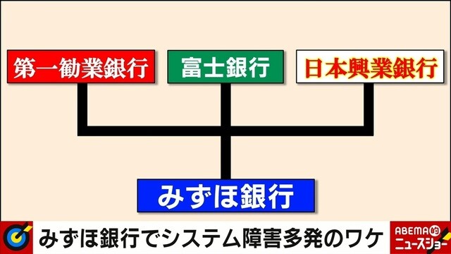 16日にABEMAで放送された『ABEMA的ニュースショー』では、みずほ銀行の元行員、さらに現行員に取材を行った。京大を卒業後、みずほ銀行を経て同番組の構成作家を務める渡邊亮太氏は、古巣のシステムトラブル問題について「一生完成することが無いシステム界のサクラダ・ファミリアと言われていた」と明かす。さらに、肌で感じたこととして「先輩上司が気にしていたのは、旧何銀行出身か、ということだ」との指摘も。