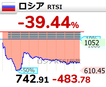 ロシア株、一時50%安を記録。株主に地獄を見せてしまう。