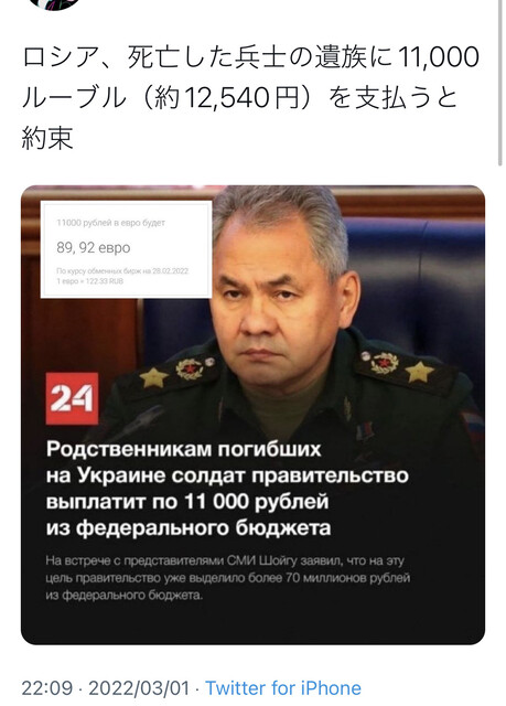 ルーブルかなり下がりましたね。兵士死者1人一万円だっけ紙切れなみの命ですね。