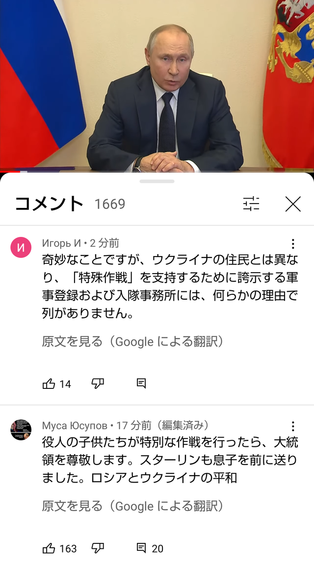 そもそもなんでプーチンはコメント欄?解放してたんや