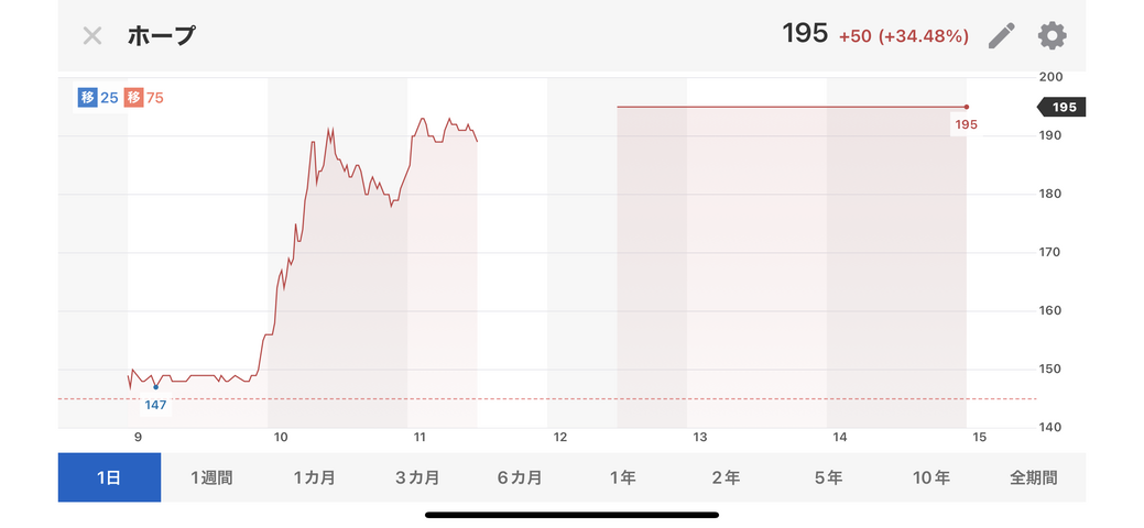 それに対してホープ株は30%近くの暴騰