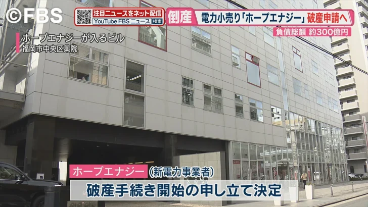 1: 2022/03/22(火) 16:33:20.14 ID:CAP_USER東証マザーズ上場で自治体向けサービスのホープは22日、新電力子会社、ホープエナジー(福岡市)の破産手続き開始の申し立てを決めたと発表した。負債総額は300億円の見通し。