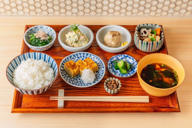生姜焼きをはじめとした食堂の“普通に美味しい”定番メニューや、dancyu農園の野菜を使用した小鉢など、一つ一つの料理をストーリーとともにご提供します。