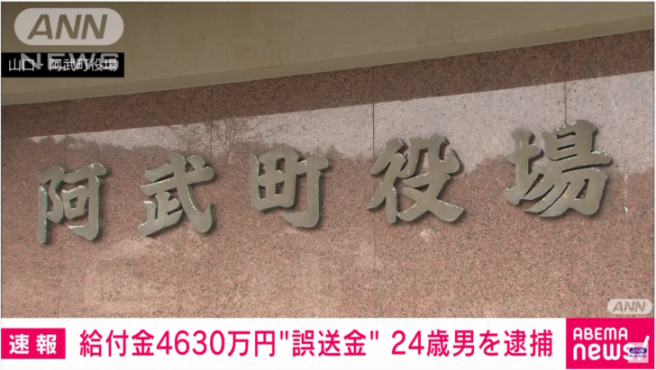 1: 2022/05/18(水) 21:42:50.57 ID:1hVOTDeK9山口県阿武町が新型コロナウイルス対策の臨時特別給付金計4630万円を誤って町内の男性(24)に振り込み、返還を求めている問題で、男性が「金は海外のインターネットカジノ数社で全部使った」と説明していることが17日、関係者への取材で分かった。
