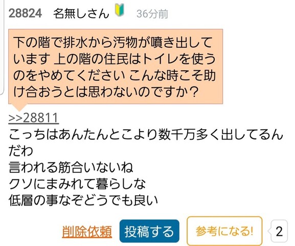 武蔵小杉であった上の階住民と下の階住民(初心者マーク)の戦い