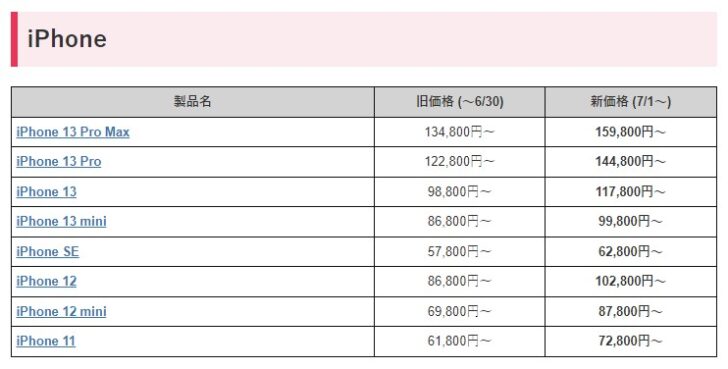 7/1iPhone新価格