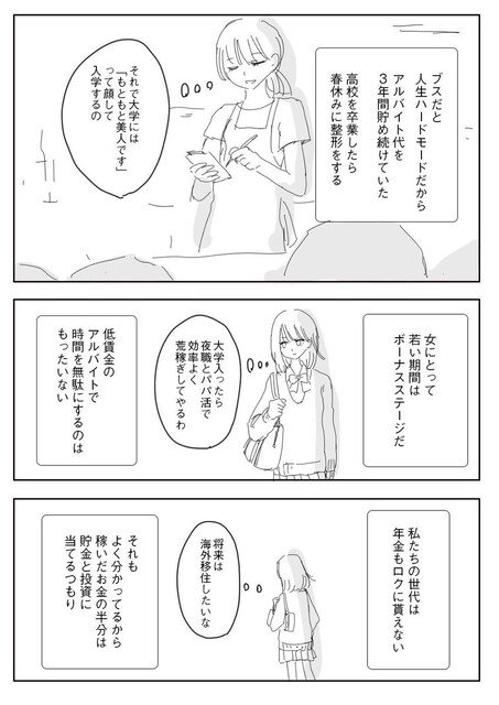 これだけ現実が見えて整形ふくめて実行する決断力があるなら普通の人生を歩んでも並み以上の生活は送れると思うで。