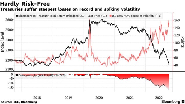 Hardly Risk-Free/Treasuries suffer steepest losses on record and spiking volatility/Source:ICE,Bloomberg