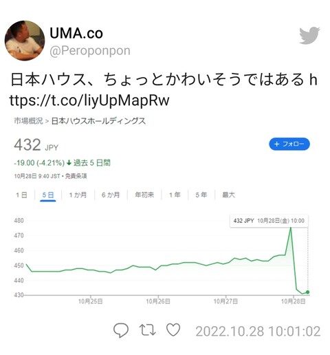吉田のおかけで日本ハウスの株がバーゲンセールになったから今のうちに買い増しとくわ