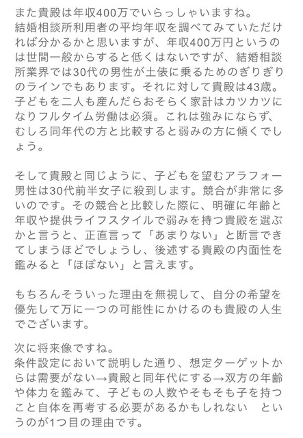 まぁ、40代実家暮らしで子供希望ってのが婚活にきたら怖いわな